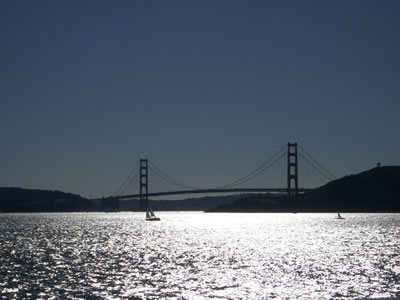 Il m'a fallu vaincre mon vertige, ce que j'ai fait grâce à l'émulation produite par la présence de Andy et Barbara, un couple du Maine que j'avais rencontré dans le train entre Toronto et Vancouver. Traversée du pont en luttant contre le vent et retour en bateau après avoir pris le lunch à Sausalito. Une journée inoubliable. |