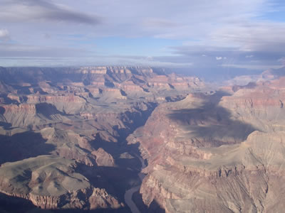 Canyon en hélicoptère. J'ai eu le nez fin car, étant en avance, j'ai pu prendre un vol plus tôt que celui prévu au départ. On a été pas mal remués et les 3 autres passagers ont été malades. Je n'en menais pas large moi-même, mais en dehors des moments délicats j'ai profité au maximum du paysage. C'est là qu'on réalise